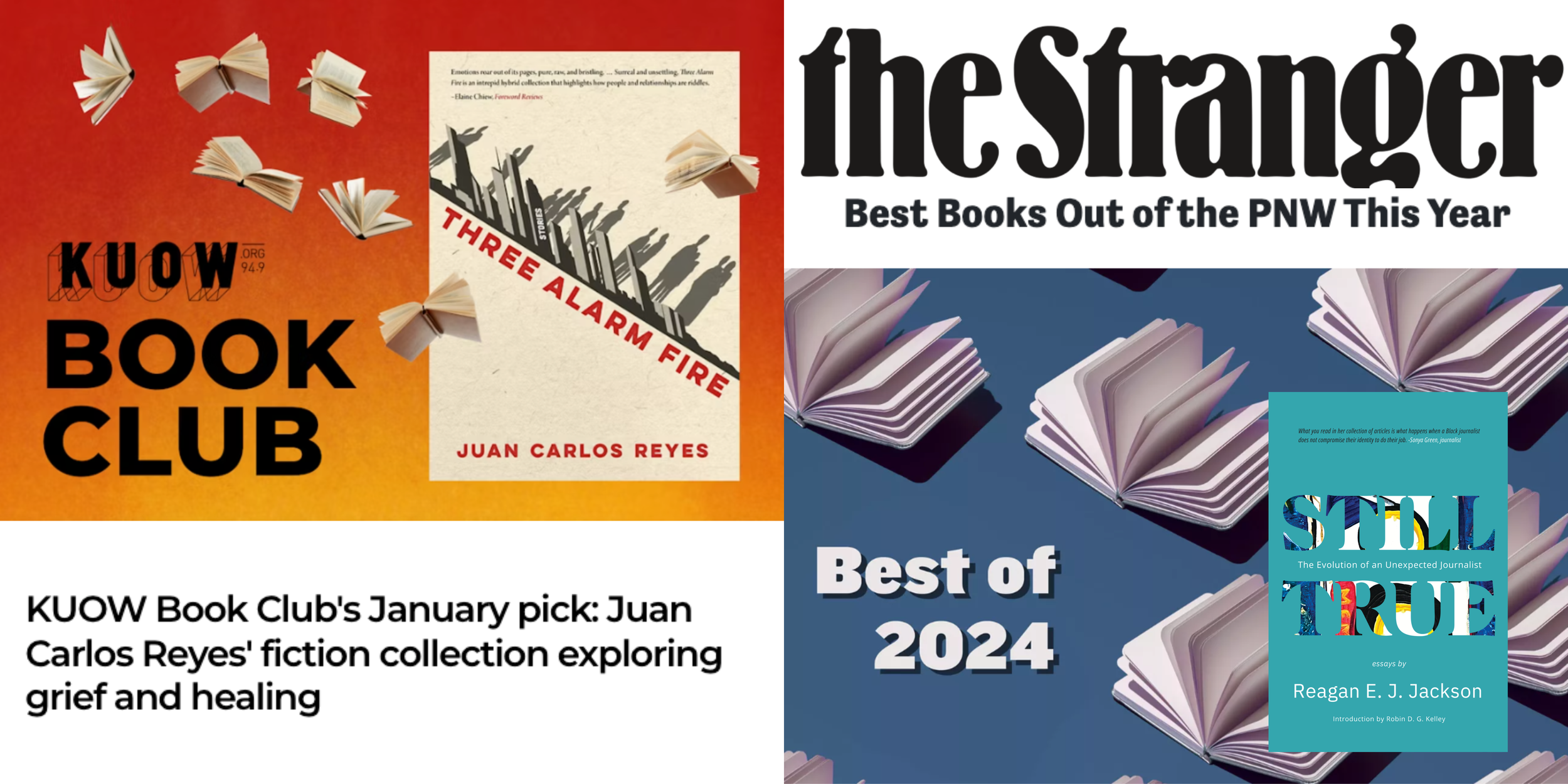 We only choose to publish books we think need to be put out into the world. So we know Still True: The Evolution of an Unexpected Journalist by Reagan E J Jackson, and Three Alarm Fire by Juan Carlos Reyes, are phenomenal. However, it’s always nice to know others appreciate what we’ve been work so hard on! We’re very pleased that our local NPR station and alternative news magazine also see how special our first two books are.